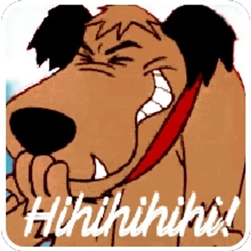 Um cão cartoon com expressão engraçada e língua de fora, com o texto 'Hihihihihi!' embaixo.