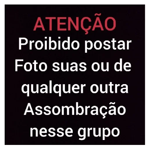 Um aviso em vermelho e branco que diz 'ATENÇÃO Proibido postar Foto suas ou de qualquer outra Assombraçã nesse grupo'
