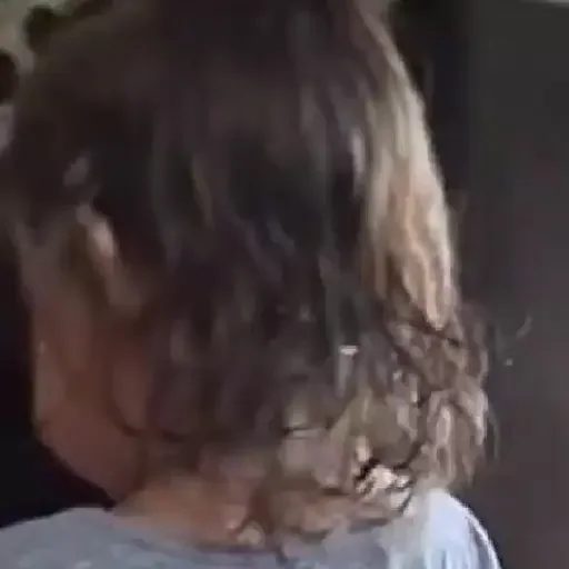 Cabelo castanho encaracolado de uma criança, vista por trás, usando uma camiseta cinza.