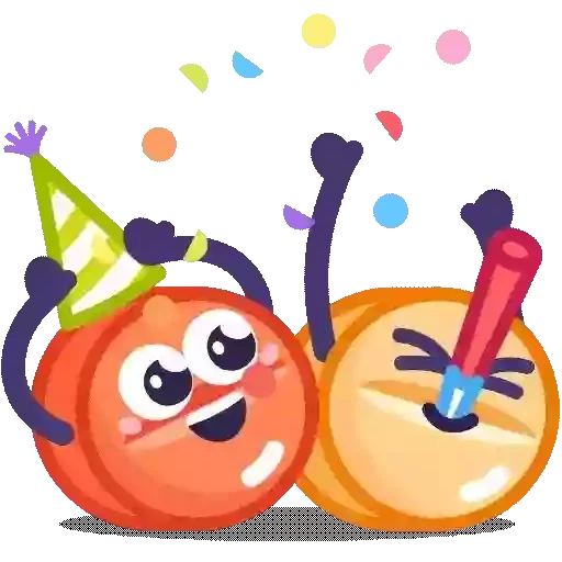 Dois donuts com expressão feliz, um usando uma festa de aniversário, rodeados de confetes.
