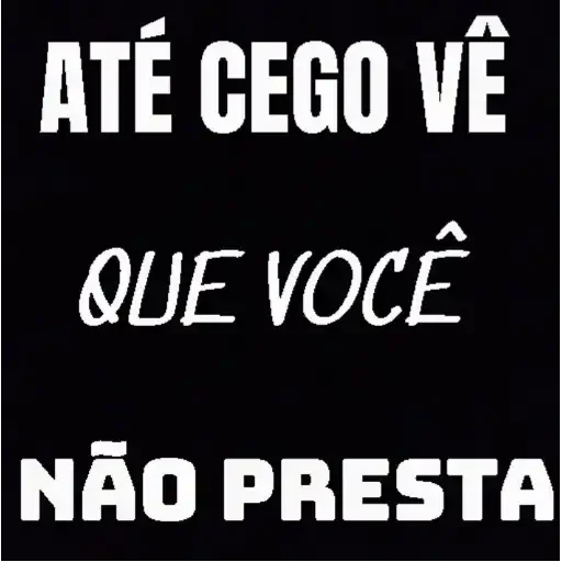 Um texto em branco e preto com as frases 'ATÉ CEGO VÊ', 'QUE VOCÊ' e 'NÃO PRESTA'.