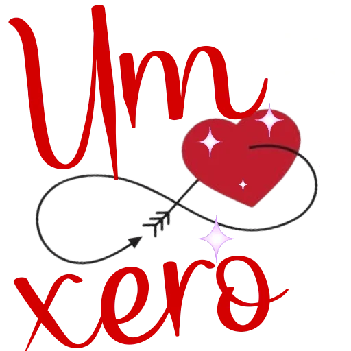 Um coração vermelho com uma flecha e a expressão 'Um xero', com estilo decorativo e estrelas.