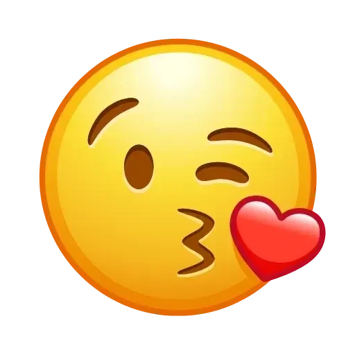 Rosto amarelo com um coração vermelho saindo da boca, olhos semicerrados e sobrancelhas levantadas.