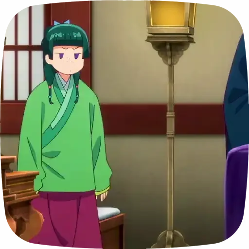 Personagem de anime com cabelo verde e roupa verde, em frente a uma mesa com uma lampada ao lado.