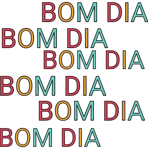 Um conjunto de textos coloridos que se repetem, 'BOM DIA', em diferentes tons de vermelho, laranja e verde.