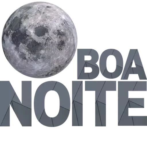Lua cheia ao lado da expressão 'BOA NOITE' em letras grandes cinzas.