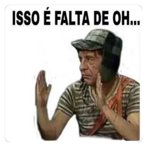 Homem com capacete de segurança e camiseta listrada, fazendo gesto com as mãos. Texto: 'ISSO É FALTA DE OH...'