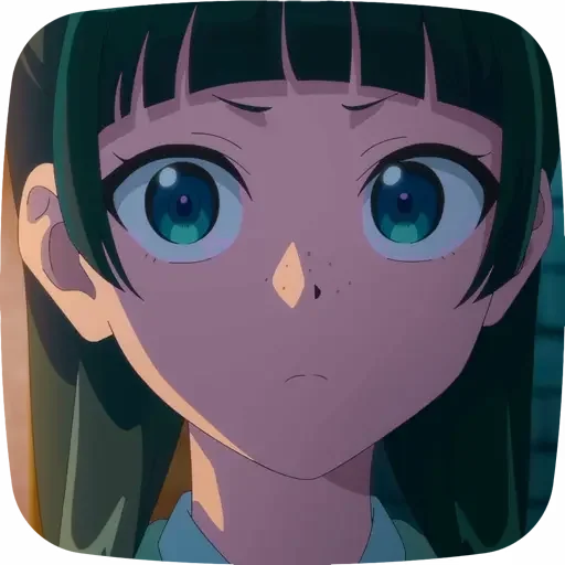Rosto de uma menina de anime com expressão surpresa ou assustada, olhos arregalados e sobrancelhas franzidas.
