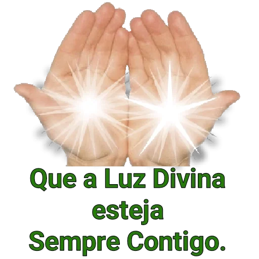 Mãos com as palmas para cima emitindo uma luz divina, com o texto 'Que a Luz Divina esteja Sempre Contigo.'
