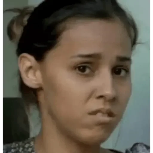 Rosto de uma mulher com expressão séria e ligeiramente desapontada, com o cabelo escuro preso.