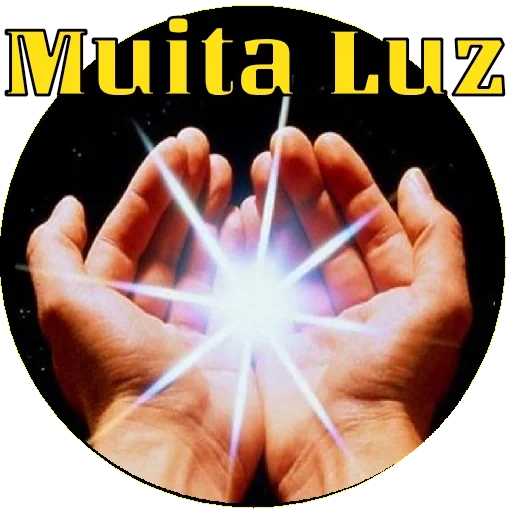 Mãos com as palmas para cima emitindo uma luz divina, com o texto 'Que a Luz Divina esteja Sempre Contigo.'