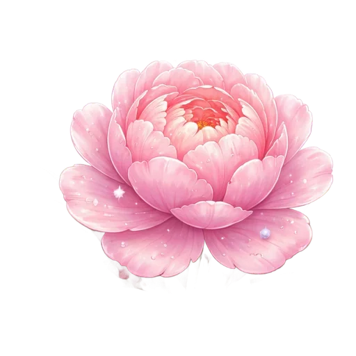 Uma flor rosa com muitas pétalas e gotículas de água, desenhada em estilo digital.