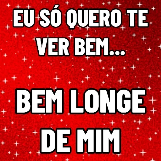 Fundo vermelho com estrelas brancas, texto em branco "EU SÓ QUERO TE VER BEM... BEM LONGE DE MIM"