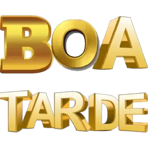 Um sticker com as palavras 'BOA TARDE' em letras grandes e douradas em 3D.