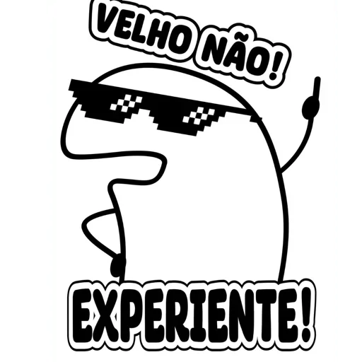 Um personagem de desenho animado com óculos de sol e um fumo, dizendo 'VELHO NÃO! EXPERIENTE!'