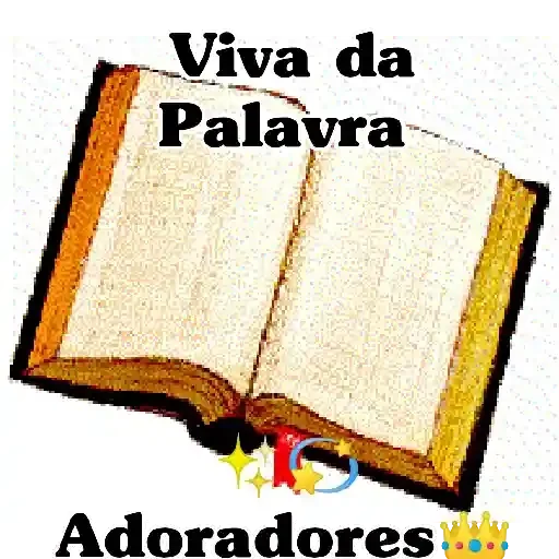 Um livro aberto com as palavras 'Viva da Palavra' e 'Adoradores' e alguns símbolos coloridos.