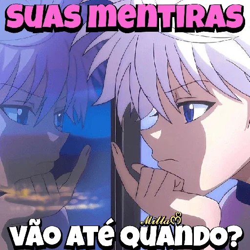 Dois personagens de anime, um menino e uma menina, com expressão curiosa e o texto 'BEIJA AQUI' em destaque.