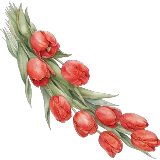 Um ramo de tulipas vermelhas com folhas verdes.