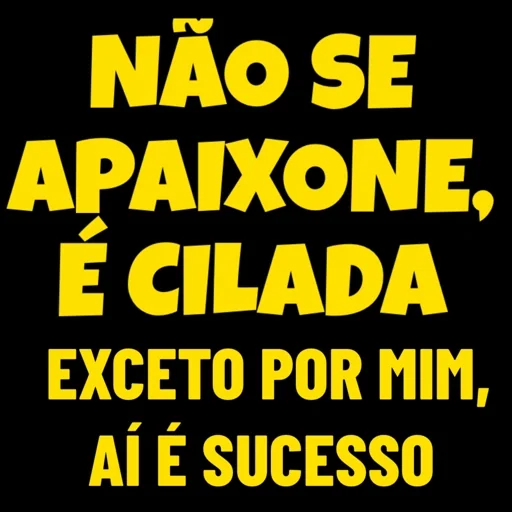 Um fundo preto com texto em amarelo que diz 'NÃO SE APAIXONE, É CILADA EXCETO POR MIM, AÍ É SUCESSO'.
