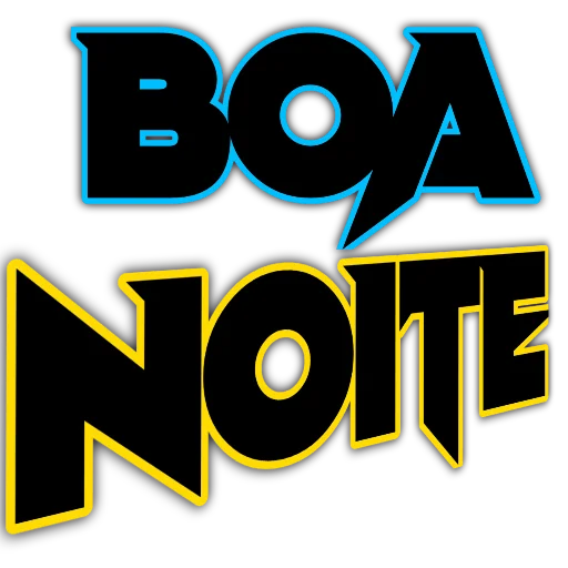 Um sticker com as palavras 'BOA NOITE' em letras grandes e coloridas.