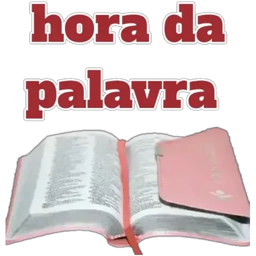 Uma Bíblia aberta com uma fita de marcador rosa e um caderno rosa ao lado, com o texto 'hora da palavra' em letras grandes vermelhas.