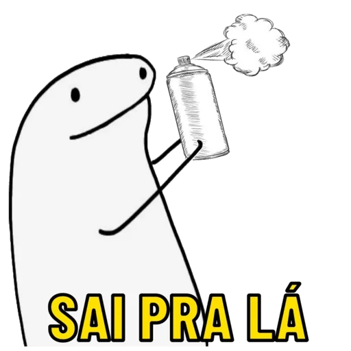 Um personagem de desenho simples, com um sorriso, pulverizando um spray com a frase 'SAI PRA LÁ' em destaque.