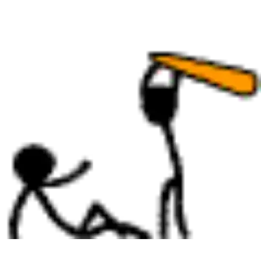 Um boneco de palito caído no chão enquanto outro boneco de palito o ameaça com um taco de beisebol laranja.