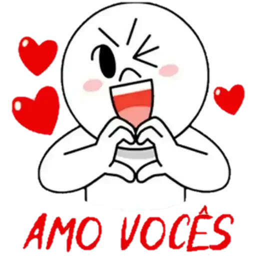 Um personagem de desenho animado com olhos fechados e coração na mão, rodeado de corações vermelhos, com a frase 'AMO VOCÊS' escrita embaixo.