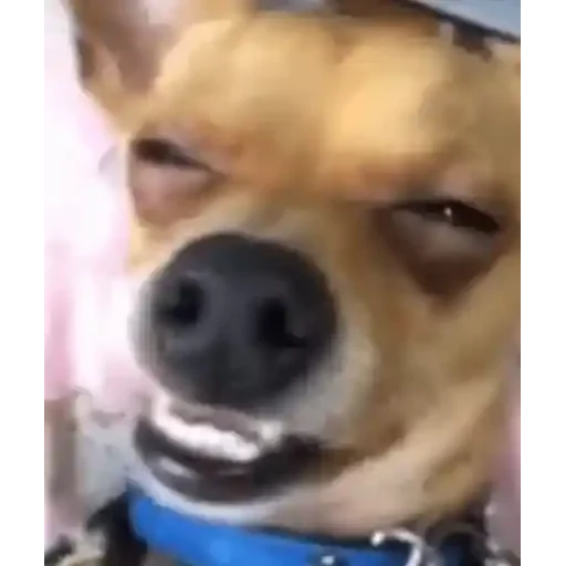 CachorrosCódigo: ghn8nyme Cachorro com expressão engraçada, mostrando os dentes e com um colar azul.