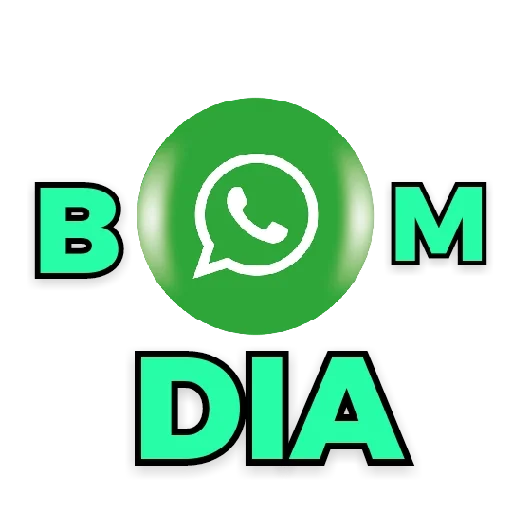 Um círculo verde com o logotipo do WhatsApp e as letras 'BOM DIA' em verde e preto.