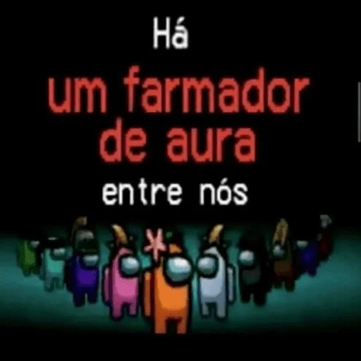 Personagens coloridos de Among Us com texto 'Há um farmador de aura entre nós'