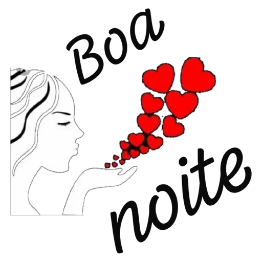 Uma mulher de perfil com a mão estendida, de onde saem corações vermelhos. Ao lado, está escrito 'Boa noite'.