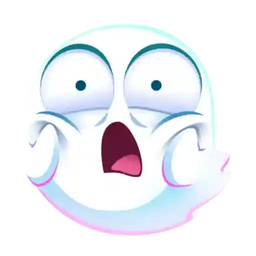 Rosto de fantasma branco com expressão de surpresa ou choque, olhos arregalados e boca aberta.