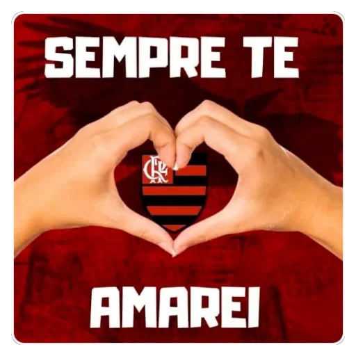 Mãos formando um coração com o escudo do Flamengo ao centro, fundo vermelho escuro. Texto 'SEMPRE TE AMAREI' em branco.