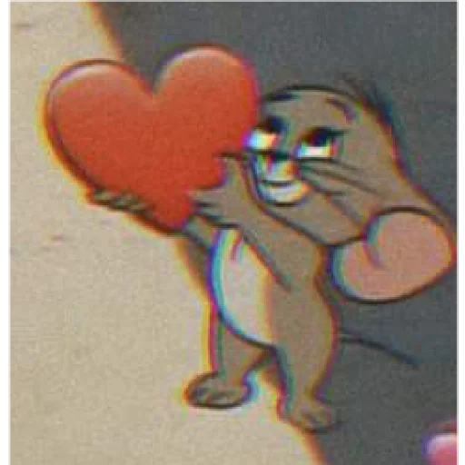 Um rato de desenho animado com um coração vermelho na mão, parecendo feliz e apaixonado.