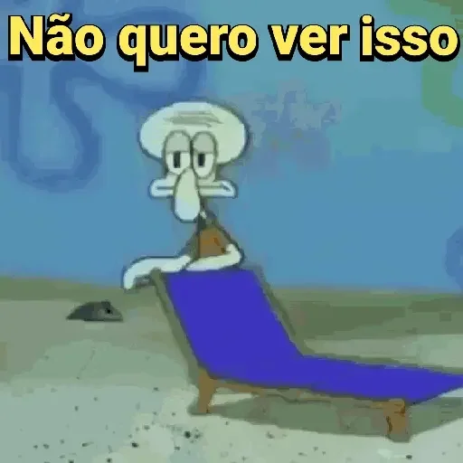 Um desenho do personagem Squidward Tentacles, de 'Os Jetsons' ou 'Bikini Bottom', sentado em uma cadeira de praia azul, com a expressão facial de desaprovação ou desgosto. A imagem traz o texto 'Não quero ver isso' na parte superior.