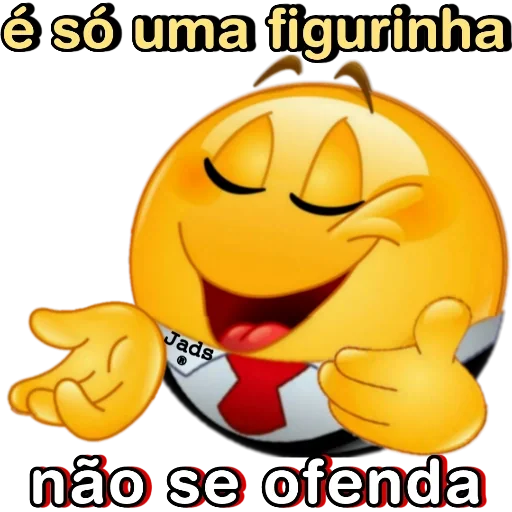 Um emoji amarelo com expressão de alegria e aprovação, vestindo uma camisa de futebol, com as frases 'é só uma figurinha' e 'não se ofenda' em destaque.