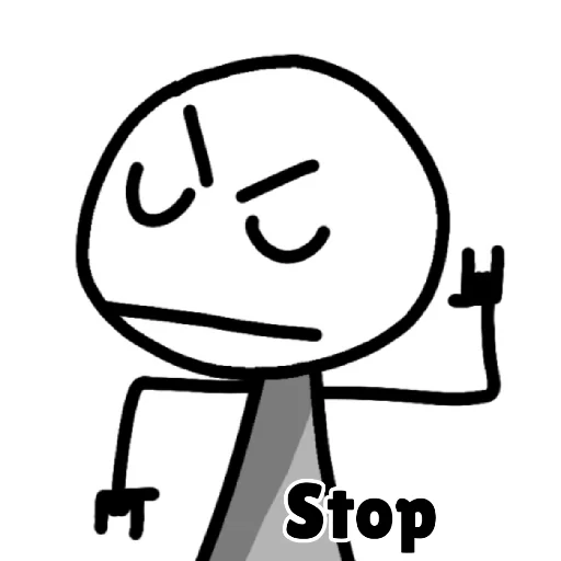 Um desenho de um boneco com expressão de desaprovação, com a mão levantada e o texto 'Stop' na parte inferior.
