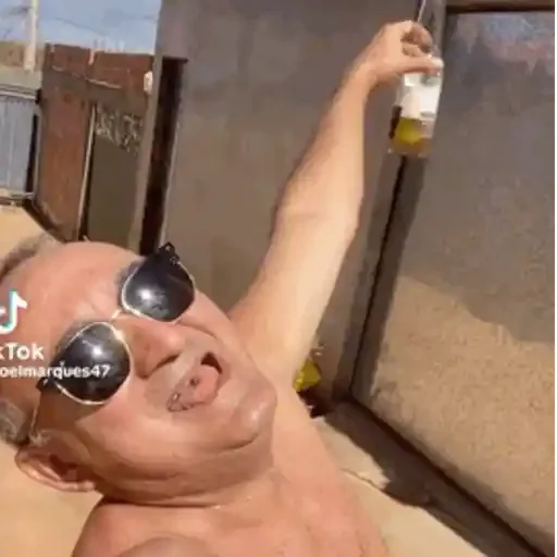 Um homem mais velho com a língua para fora e a mão no rosto, parecendo surpreso ou fazendo uma careta engraçada.