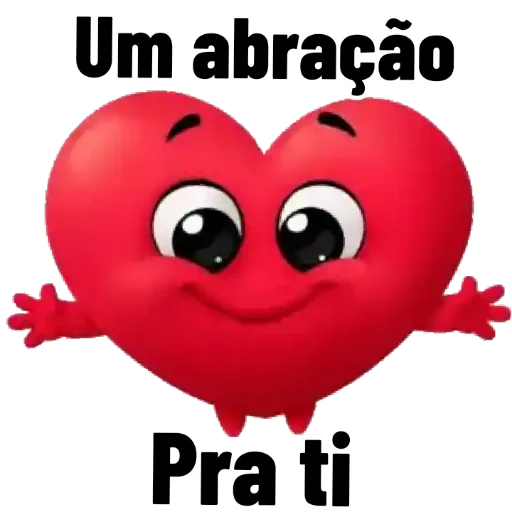 Um coração vermelho com olhos e braços, sorrindo e com uma expressão feliz, com o texto 'Um abração Pra ti' em preto.