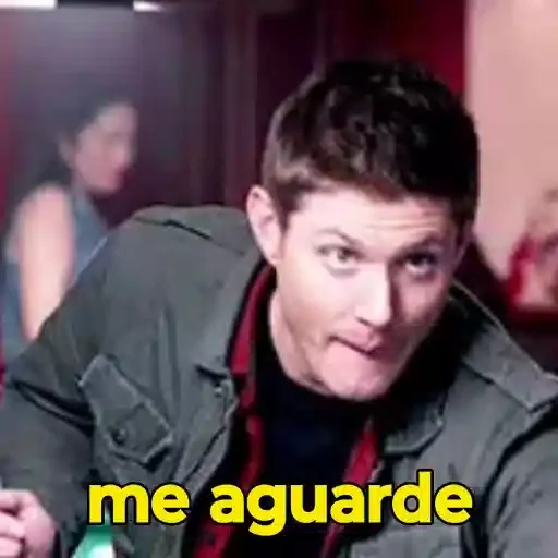 Homem com expressão surpresa ou de alerta, olhando para algo fora da imagem. Ele veste uma jaqueta cinza sobre uma camisa preta com uma listra vermelha. O texto 'me aguarde' aparece em amarelo na parte inferior.