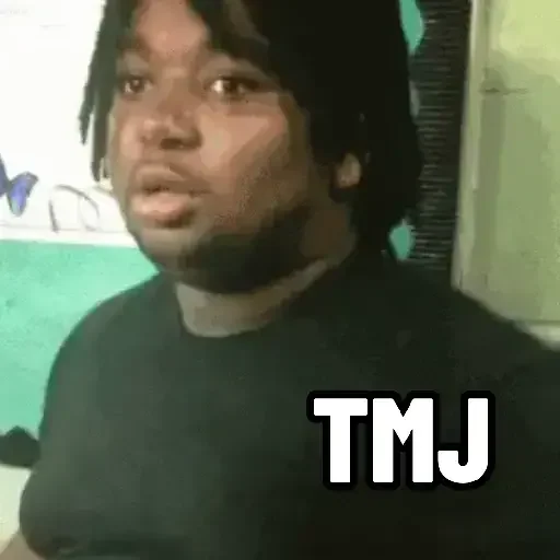 Um homem negro com dreads e barba, vestindo uma camiseta preta, olhando para o lado com uma expressão neutra. O texto 'TMJ' aparece em branco com contorno preto no canto inferior direito.