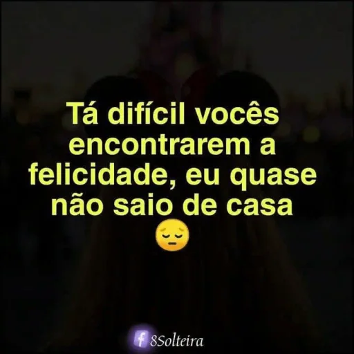 Um texto em amarelo sobre fundo escuro: 'Tá difícil vocês encontrarem a felicidade, eu quase não saio de casa'. Abaixo do texto, um emoji de rosto triste. No canto inferior, um logo com o texto '@Selfrona'.