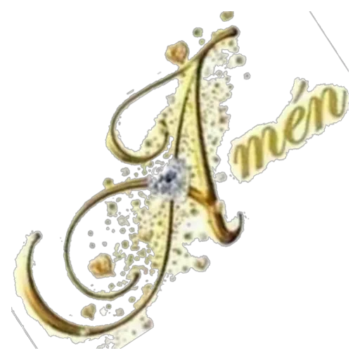 Letra 'A' em ouro com diamante e borbulhas, acompanhada da palavra 'mén' em cursivo dourado.
