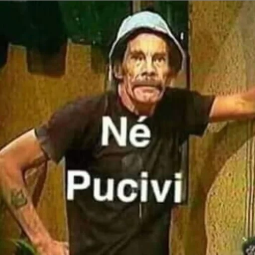 Homem com boné e camiseta preta, com texto 'Né Pucivi' sobreposto.