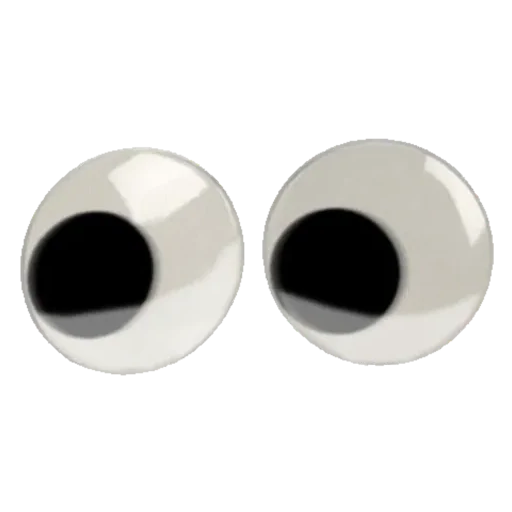Dois olhos grandes e redondos com pupilas pretas, parecendo de um personagem de desenho animado, com reflexos de luz em suas superfícies.