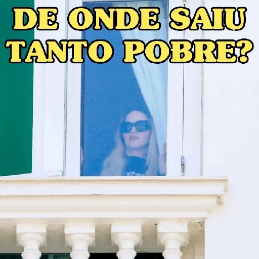 Uma mulher com óculos escuros aparece atrás de uma janela com uma faixa verde ao lado, com o texto "DE ONDE SAIU TANTO POBRE?" em amarelo com contorno preto.