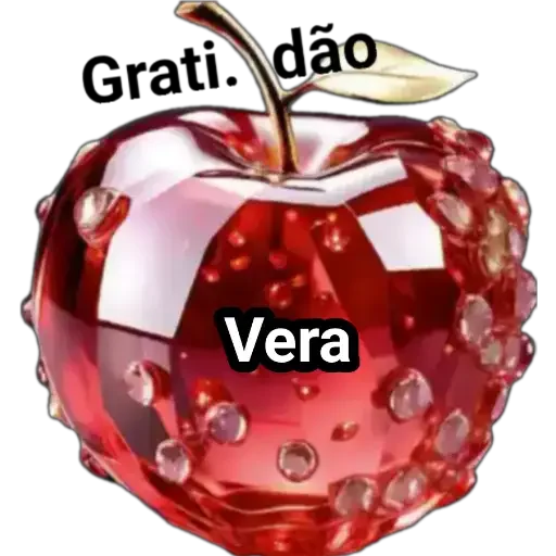 Uma maçã vermelha brilhante com gotículas de água, folhas verdes e o texto 'Grati. dão' e 'Vera' sobreposta.