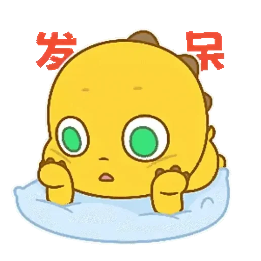Um personagem de desenho animado amarelo com olhos verdes grandes e expressivos, parecendo surpreso ou assustado, com caracteres chineses vermelhos acima de sua cabeça.