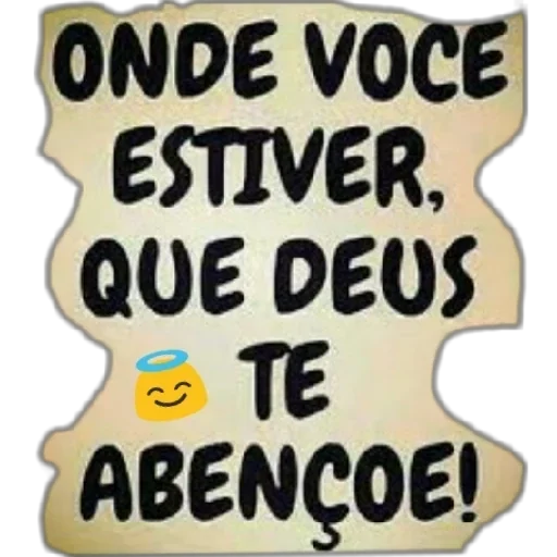 Um fundo bege com bordas irregulares e uma mensagem em preto 'ONDE VOCE ESTIVER, QUE DEUS TE ABENÇOE!' acompanhada de um emoji de anjo amarelo com auréola azul e sorriso.